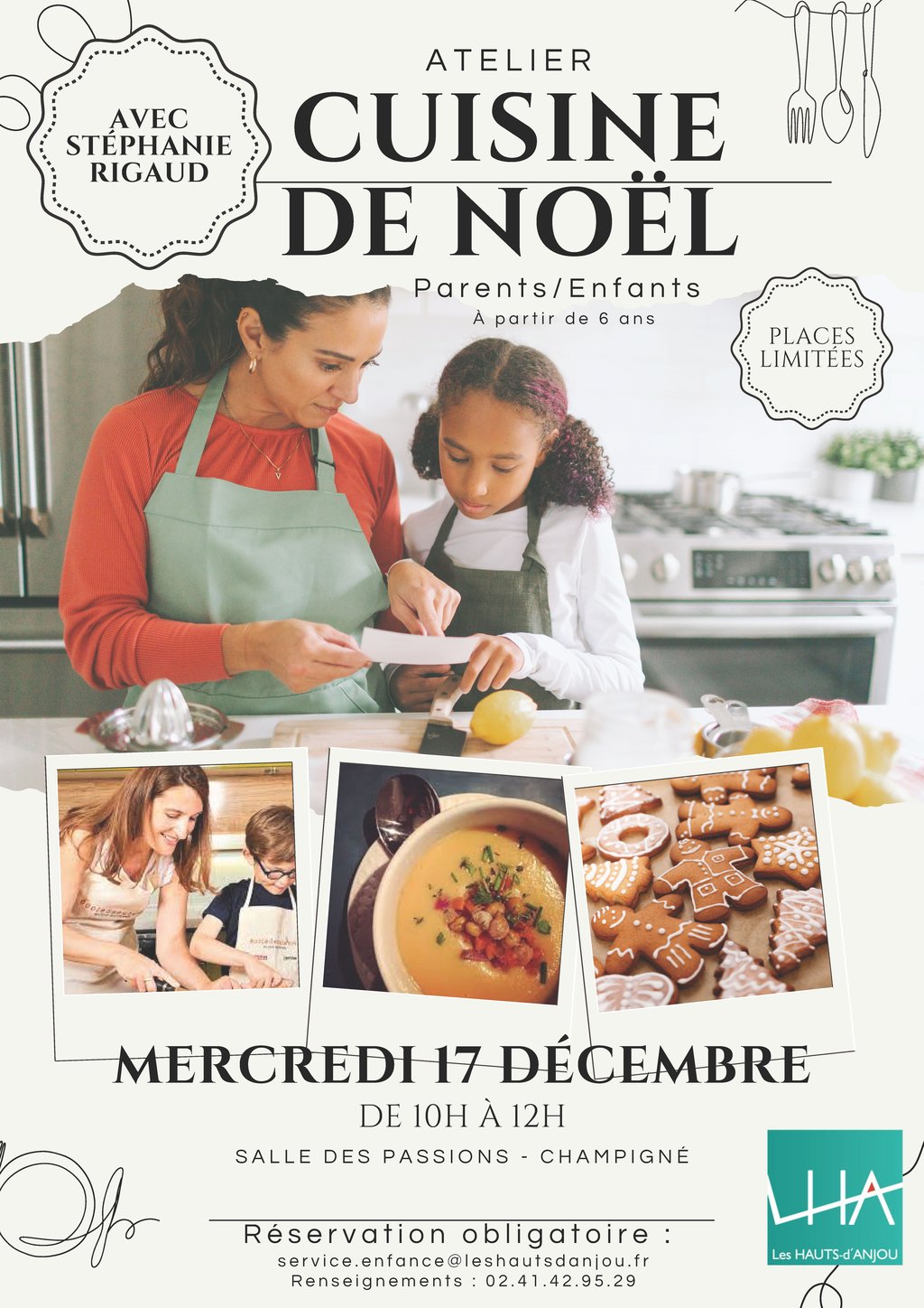 Découvrez des recettes saines et gourmandes pour les fêtes lors de notre atelier cuisine parents/enfants, animé par Stéphanie Rigaud, diététicienne, pour allier plaisir et équilibre autour du repas de Noël.