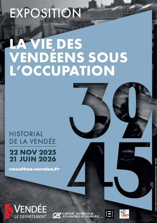 Le Département de la Vendée présente du 22 novembre 2025 au 21 juin 2026, à l’Historial de la Vendée, l’exposition 39/45, la vie des Vendéens sous l’Occupation, une grande rétrospective du conflit mondial en Vendée. En suivant les parcours de vie d’hommes et de femmes, l’exposition explore au travers d’une grande richesse de documents, d’objets et de récits, la complexité de cette période, mettant en lumière l’engagement résolu, les luttes, les drames et les espoirs qui ont façonné alors le quotidien des vendéens et des vendéennes.