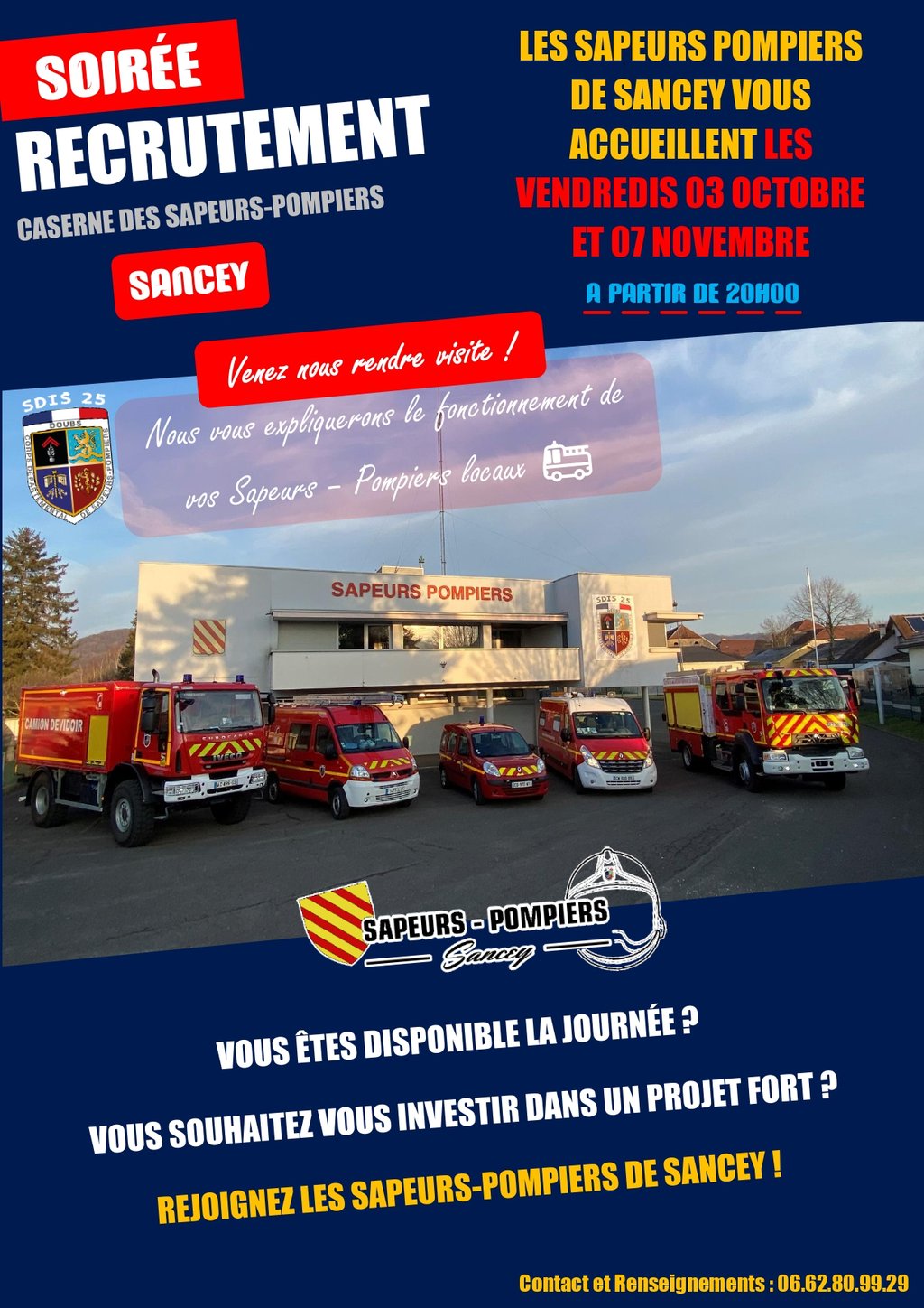 Les sapeurs pompiers de Sancey vous accueillent à la caserne les vendredis 3 octobre et 7 novembre à partir de 20h.