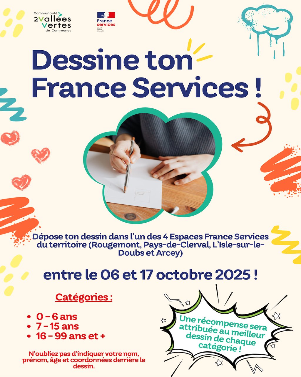 Dans le cadre des Journées France Services, les Espaces France Services de la Communauté de Communes des 2 Vallées Vertes organise un concours de dessin ouvert à tous les habitants.