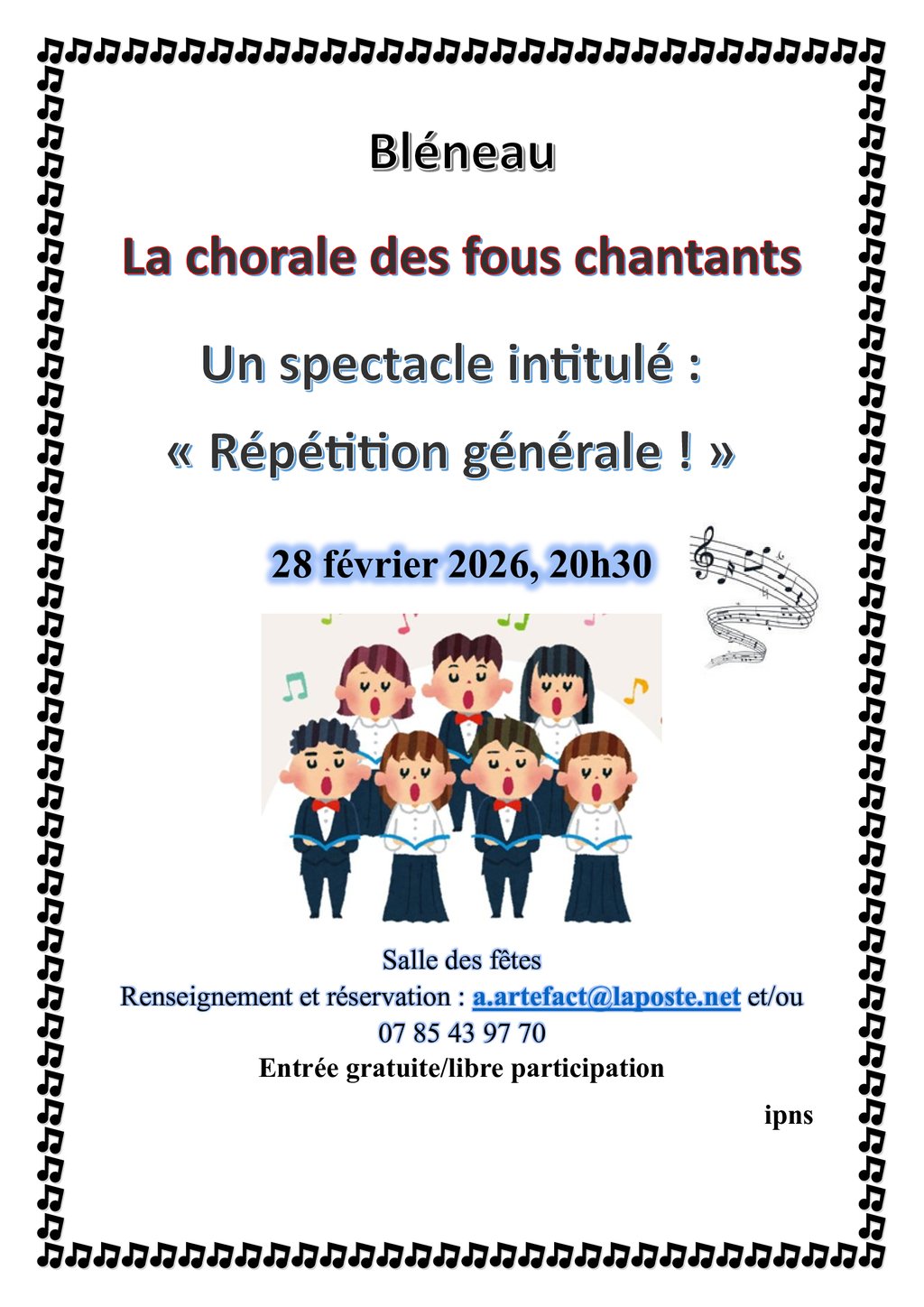 Spectacle intitulé "Répétition générale!" avec la Chorale des fous chantants de Bléneau