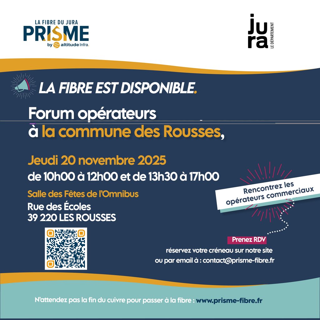 Possibilité de prendre rendez-vous sur le site de prisme ou par mail : contact@prisme-fibre.fr