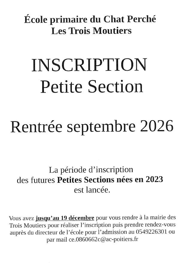 INSCRIPTION PETITE SECTION A L'ECOLE ...