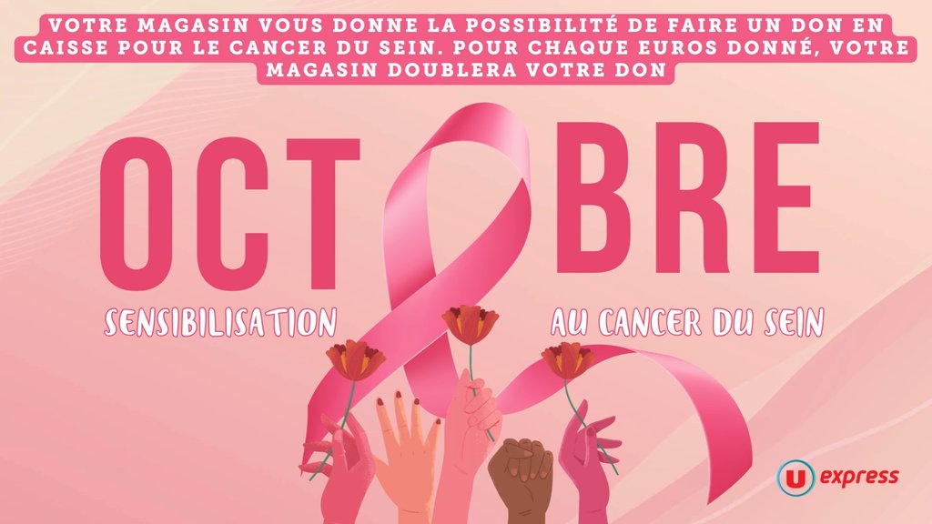A votre passage en caisse dites-nous ce que vous voulez donner à l'association "ruban rose" : 1€, 2€ ou 5€