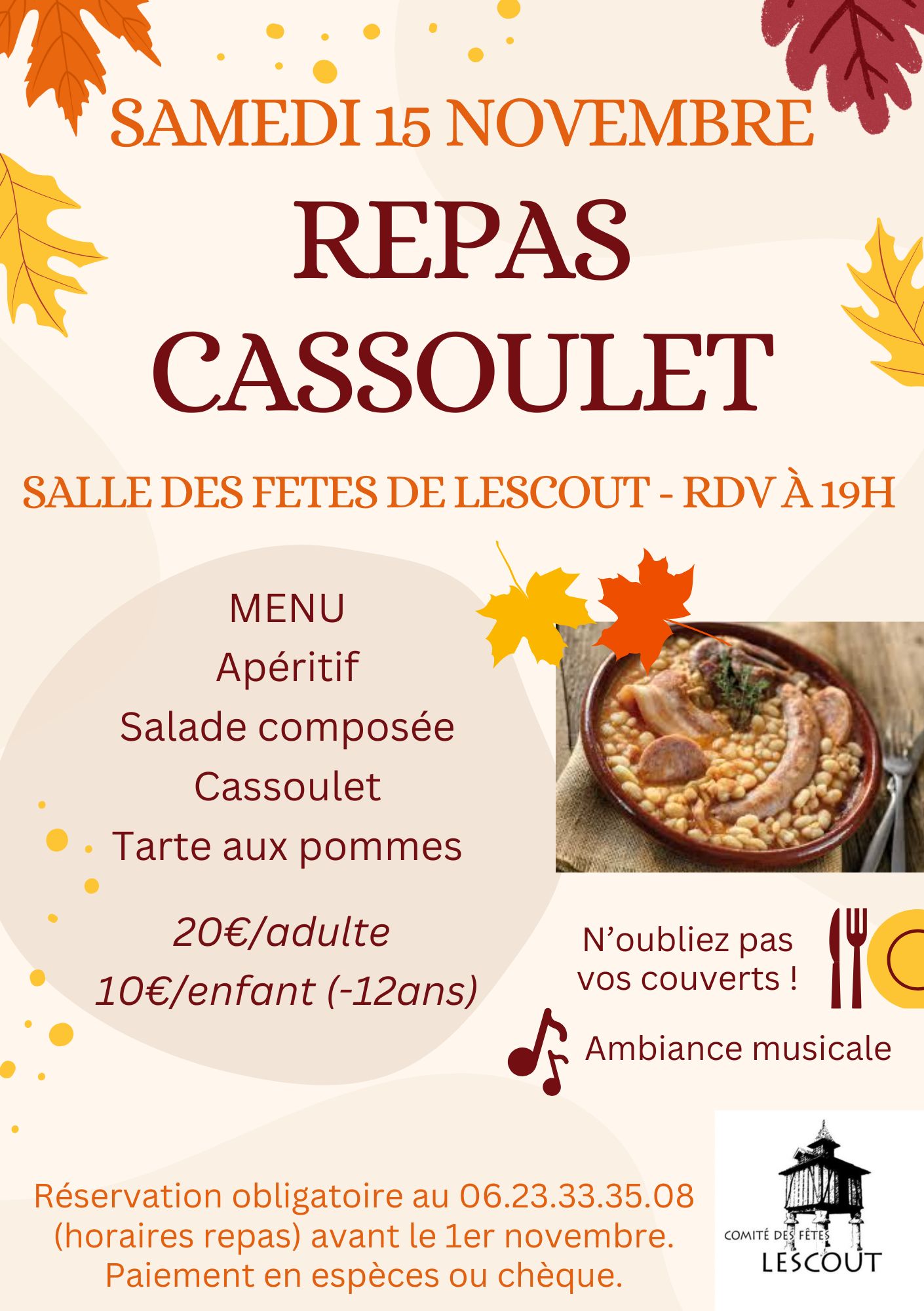 REPAS CASSOULET - INSCRIPTIONS PROLONGÉES