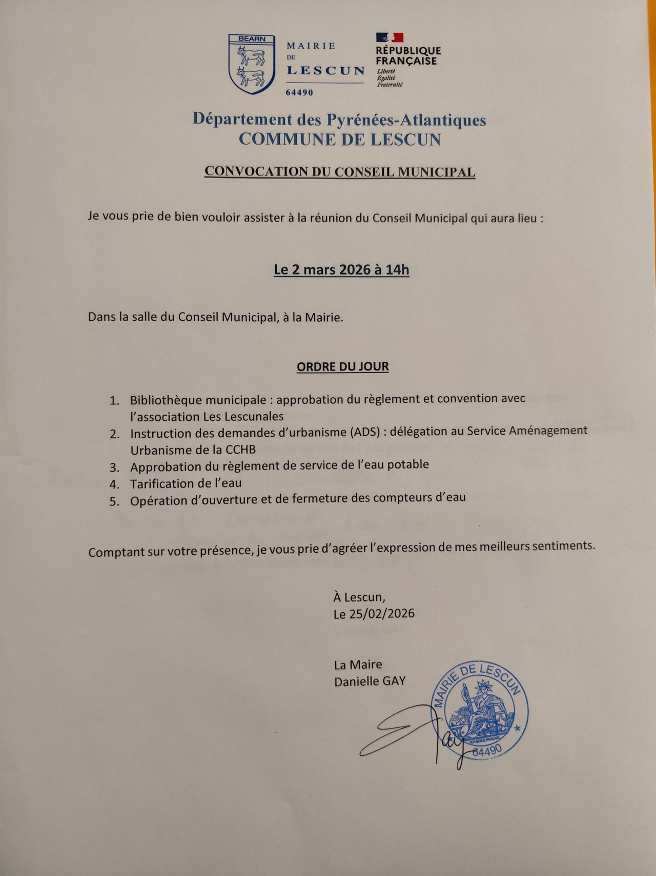 Veuillez trouver ci-joint l'ordre du jour du prochain conseil municipal.