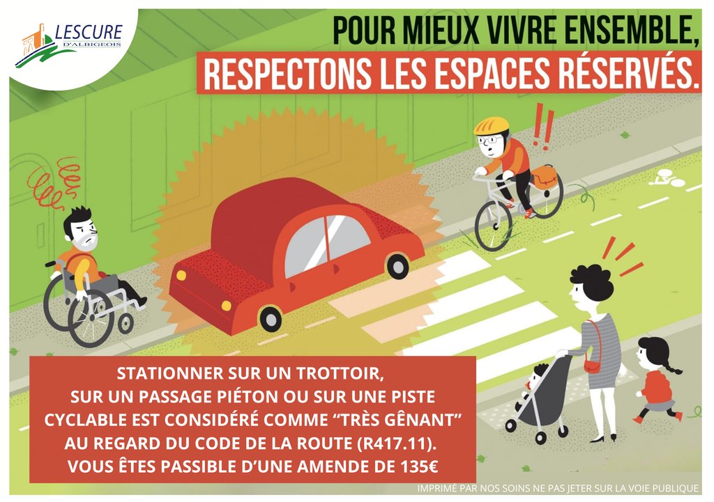 Pour mieux vivre ensemble, respectons les espaces réservés (passages piétons, pistes cyclables...)