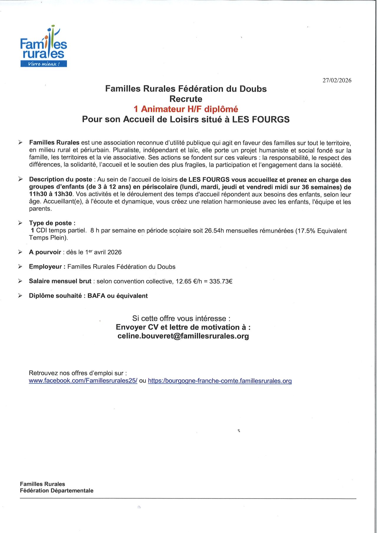Publié le vendredi 27 février 2026 - Les Fourgs
