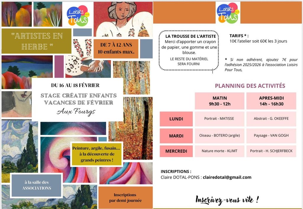Inscriptions par 1/2 journée : clairedotal@gmail.com
