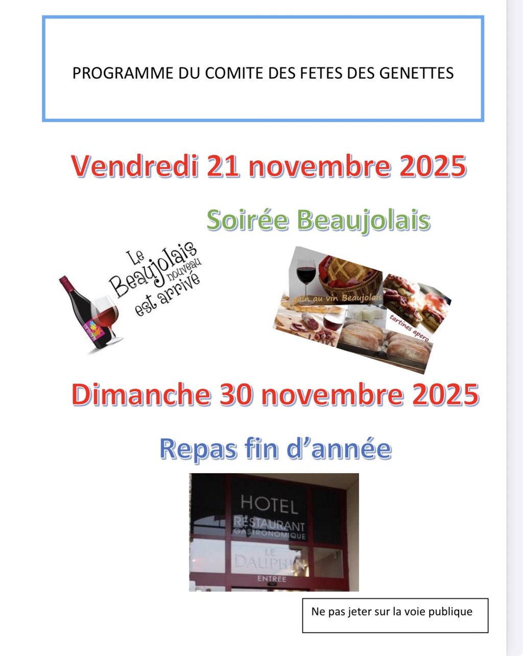 DATES À RETENIR ! BEAUJOLAIS ET REPAS DE FIN D'ANNÉE