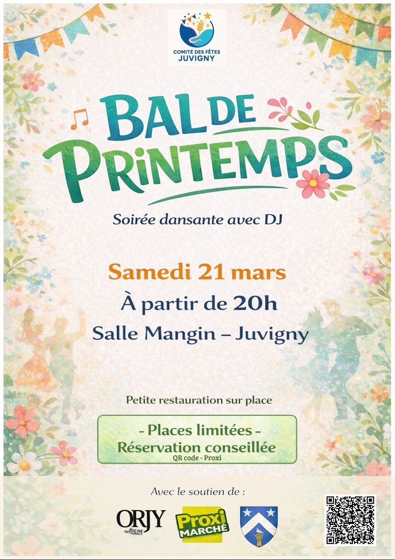 Le comité des fêtes de Juvigny vous donne rendez-vous pour une soirée festive et dansante à l’occasion du Bal de Printemps, le samedi 21 mars, à partir de 20h, à la Salle Mangin.