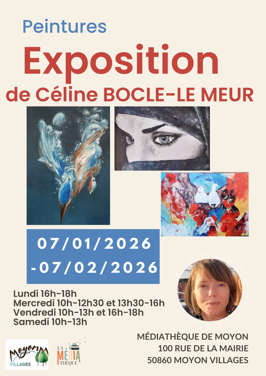 Exposition de peintures de Céline Bocle-Le Meur, visible aux heures d'ouverture de la Médiathèque.
