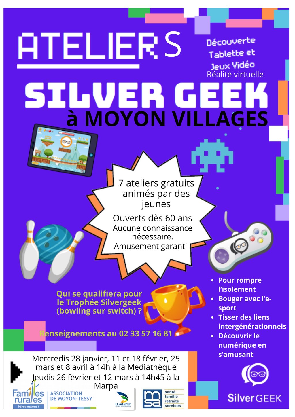 Rompre l’isolement, bouger, s’amuser et découvrir le numérique dans une ambiance conviviale : c’est l’objectif des ateliers Silver Geek proposés à Moyon Villages à destination des personnes de 60 ans et plus.