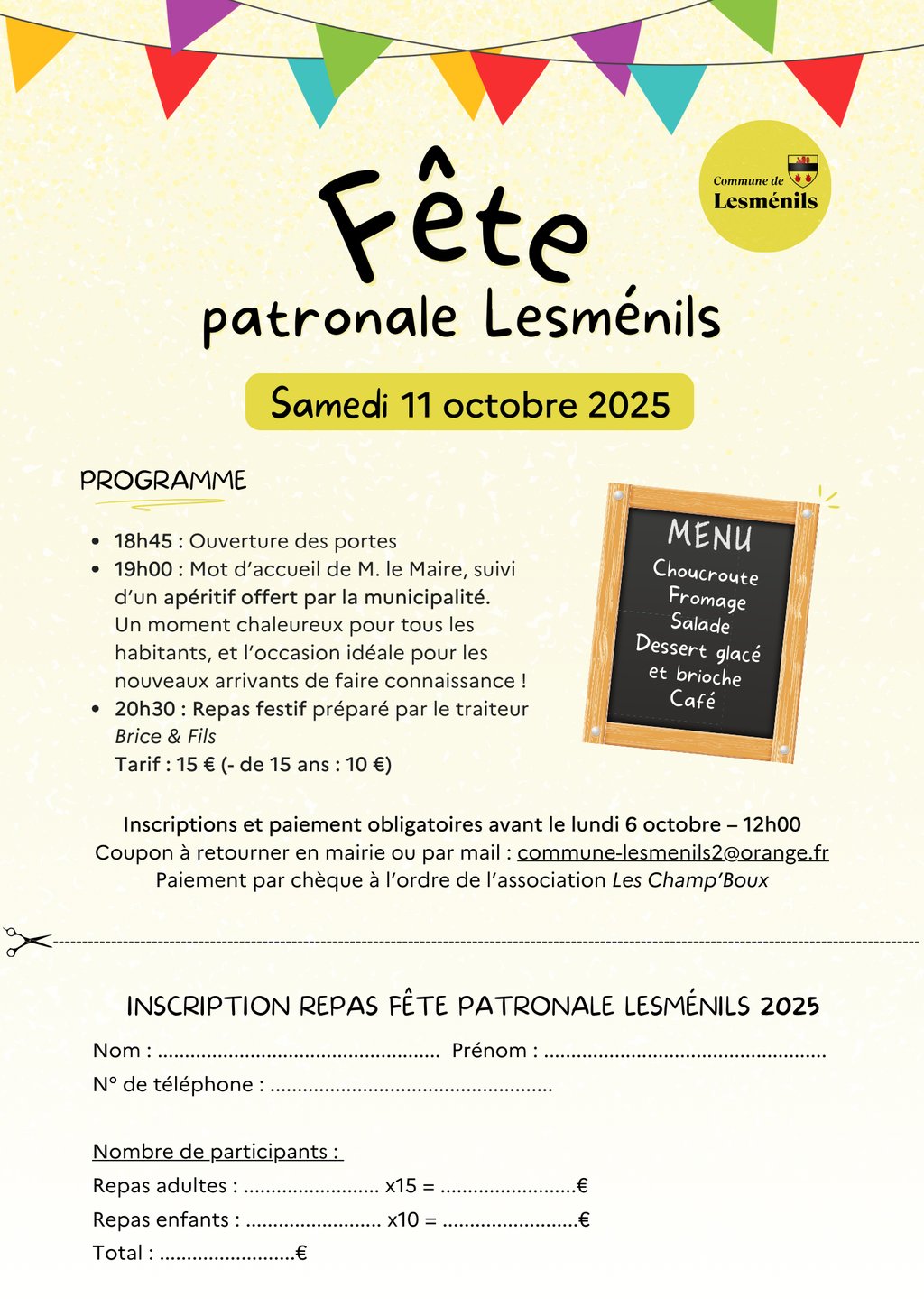 🎉 FÊTE PATRONALE DE LESMÉNILS – SAMEDI 11 OCTOBRE 2025