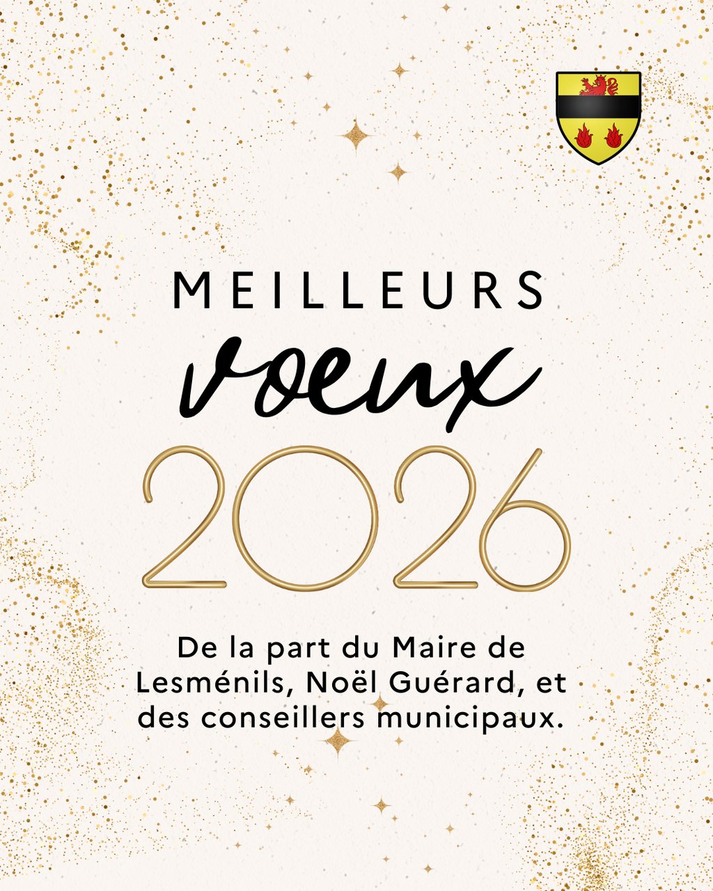 Monsieur Noël Guérard, Maire de Lesménils, et les conseillers municipaux souhaitent une trÚs belle année 2026 à toutes les habitantes et à tous les habitants de la commune.