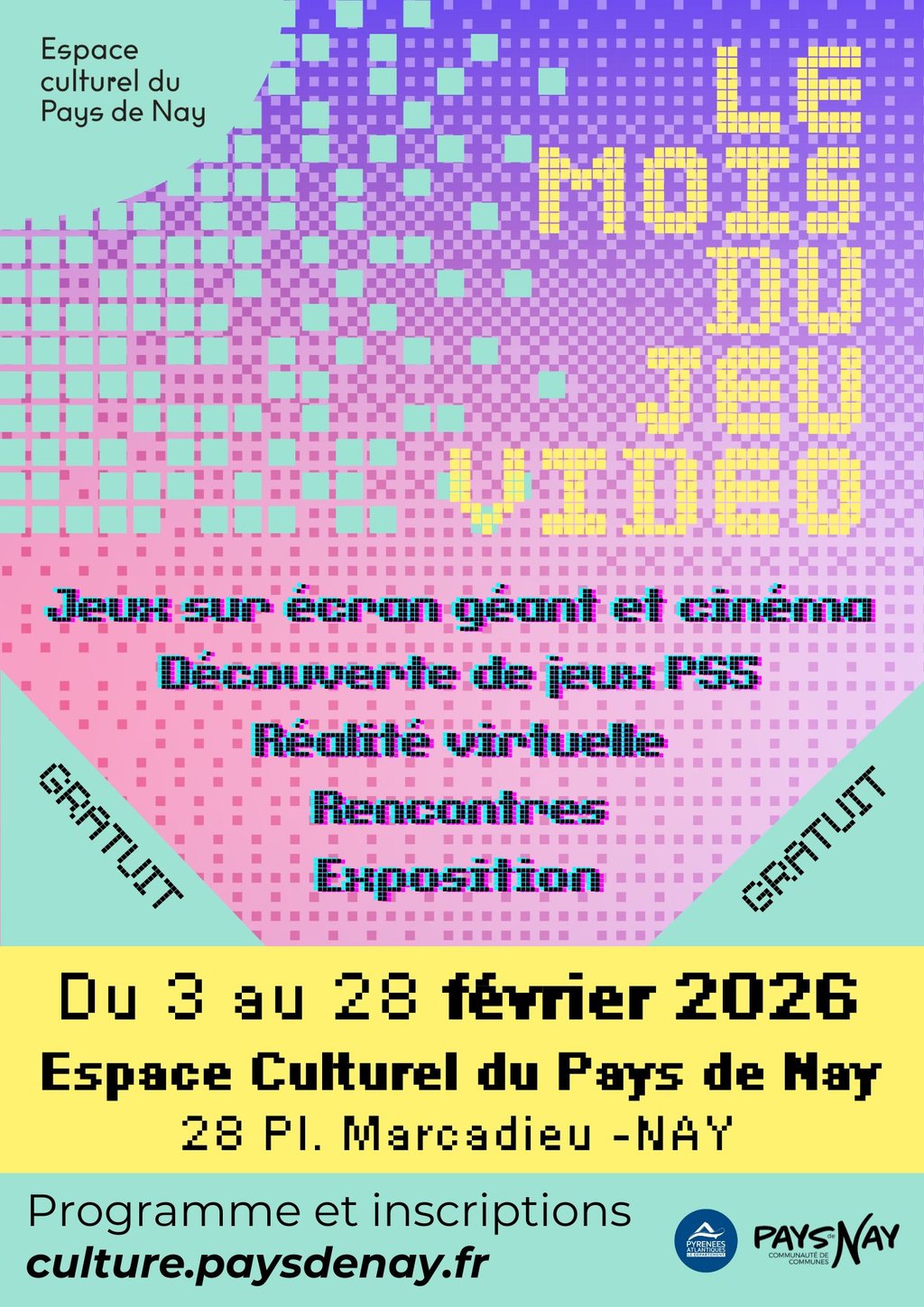 Du 3 au 28 février 2026, l'Espace Culturel met en lumière le jeu vidéo sous toutes ses formes, avec un large panel d'activités pensées pour tous, du simple curieux au passionné !