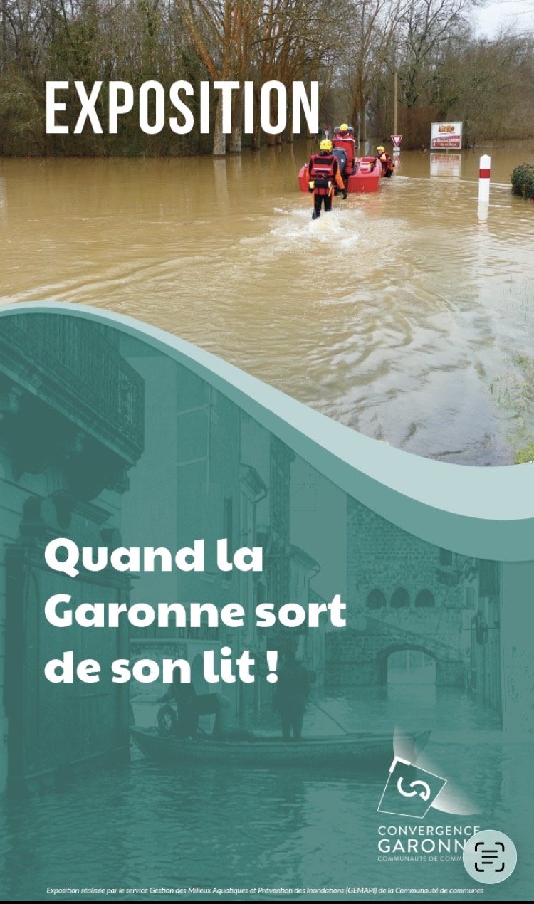 En partenariat avec le CdC Convergence Garonne, durant tout le mois de février, la municipalité a le plaisir de mettre à votre disposition l'exposition itinérante : "Quand la Garonne sort de son lit". Elle a pour mission de conserver la mémoire des évènements historiques et de développer la conscience du risque sur notre territoire.