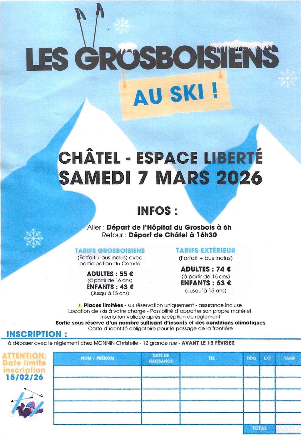 Si vous êtes intéressés pour cette sortie Ski, déposez votre inscription chez MONNIN Christelle, 12 Grande Rue AVANT le 15 Février !