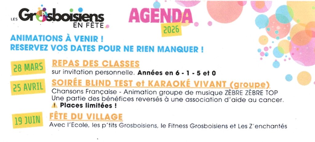"LES GROSBOISIENS EN FÊTE" : AGENDA 2026