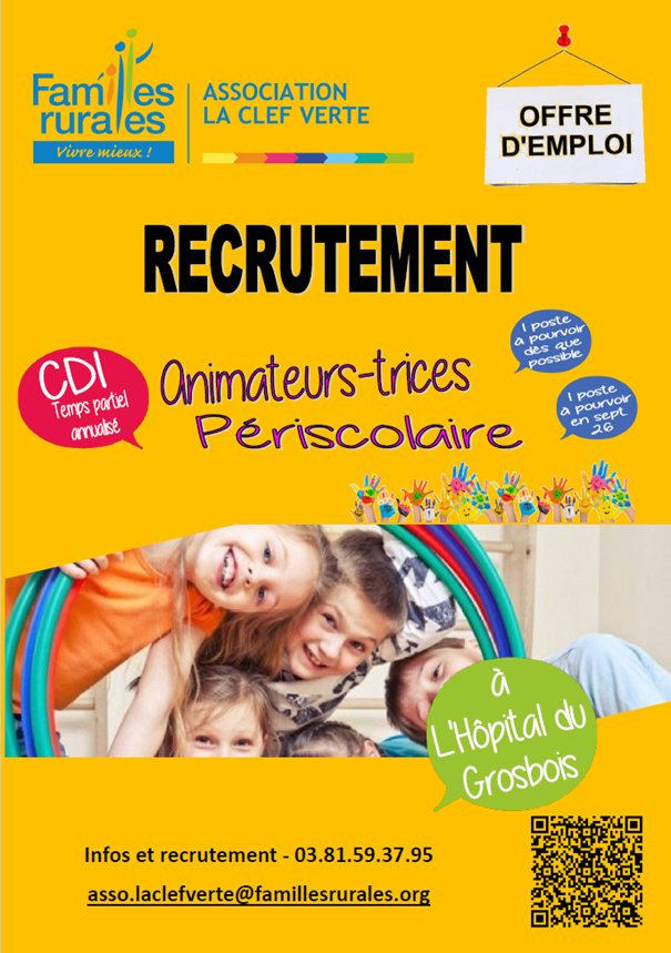 Familles Rurales / Association "La Clef Verte" recrute pour le Périscolaire de la Commune :