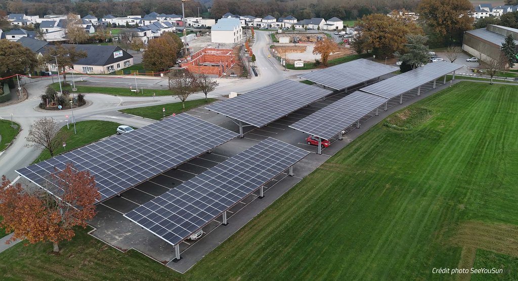 ✅ En collaboration avec la commune, la Société Énergie Mayenne, SeeYouSun & Énergie Partagée, 6 ombrières photovoltaïques ont été installées sur le parking de l’école et des salles de sport de la ville de L'Huisserie