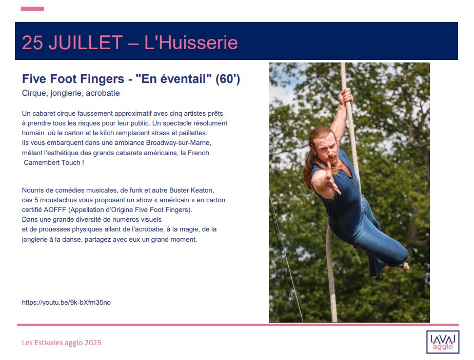 Les Estivales sont de retour et débarquent à L'Huisserie le 25 Juillet prochain pour un numéro d’acrobatie totalement loufoque et "haut en couleurs" 🤸‍♀️🤸🤸‍♂️