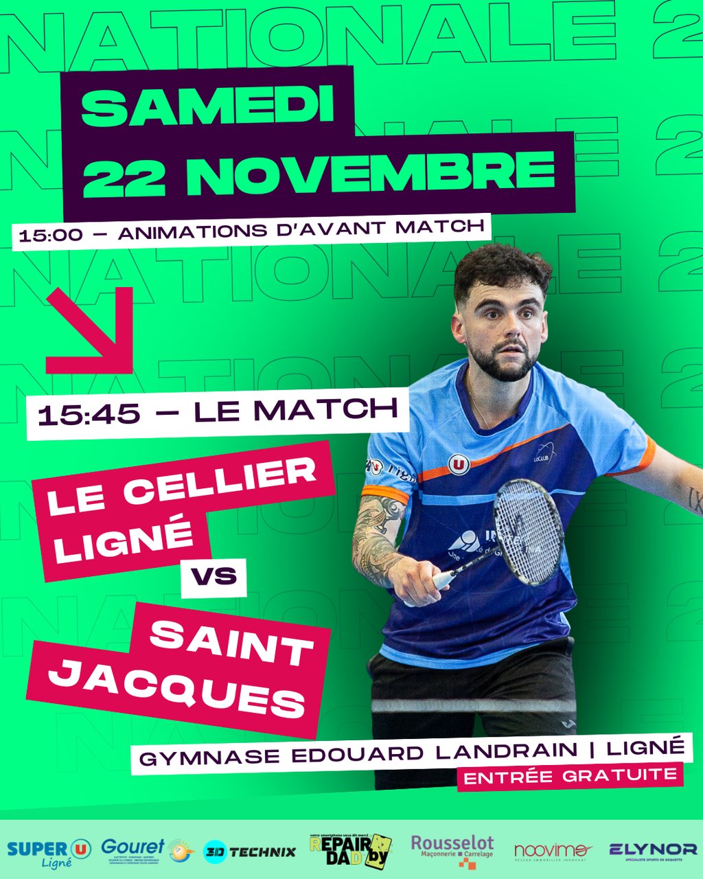 Publié le dimanche 16 novembre 2025 - LeCLUB (Le Cellier Ligné Union Badminton)