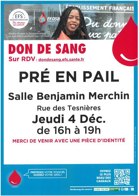 DON du SANG le jeudi 4 décembre de 16h à 19h