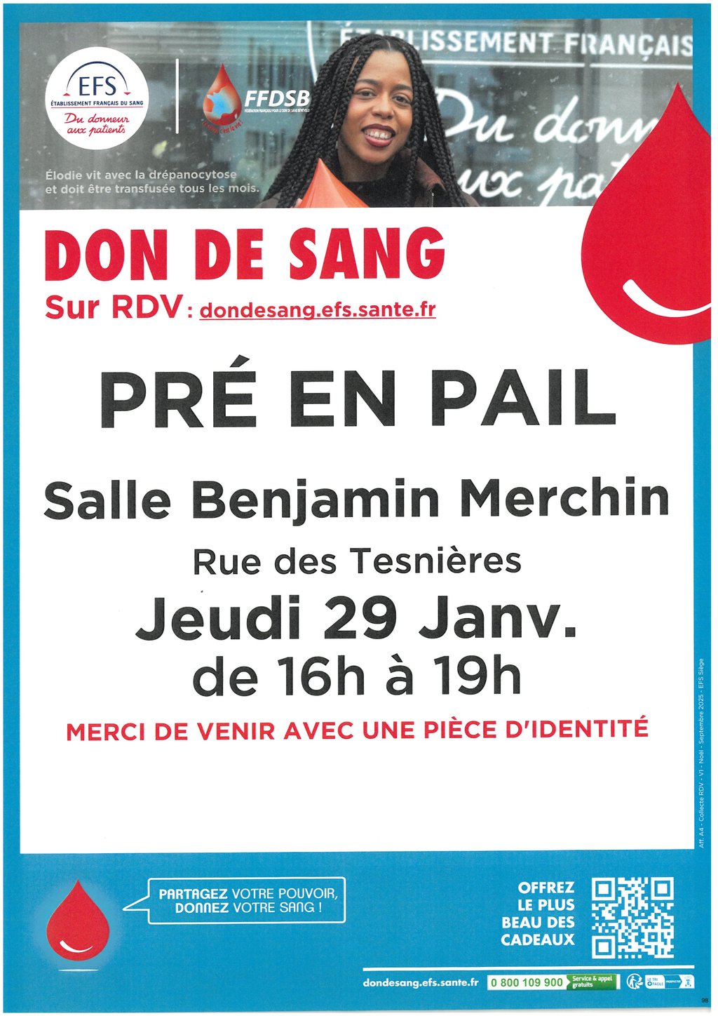 DON du SANG le jeudi 29 Janvier de 16h à 19h