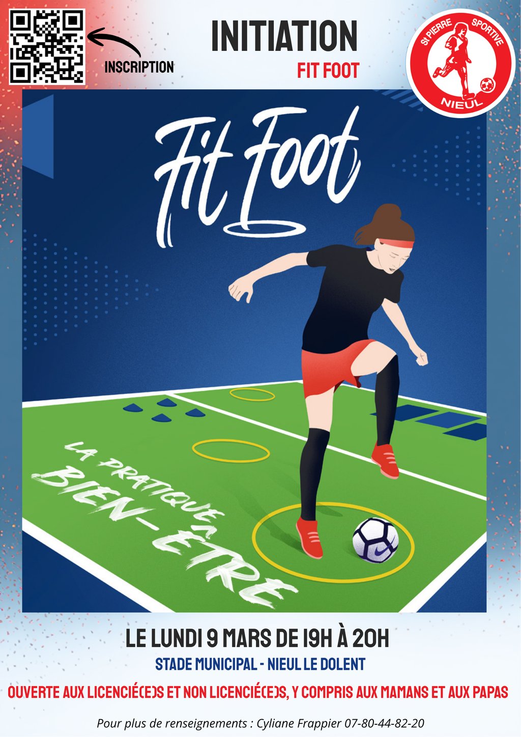 La SPSN propose une séance d’initiation au Fit Foot, au stade municipal (en extérieur ou en intérieur selon la météo), activité sportive combinant cardio et renforcement musculaire, inspirée des mouvements du football et pratiquée en musique.