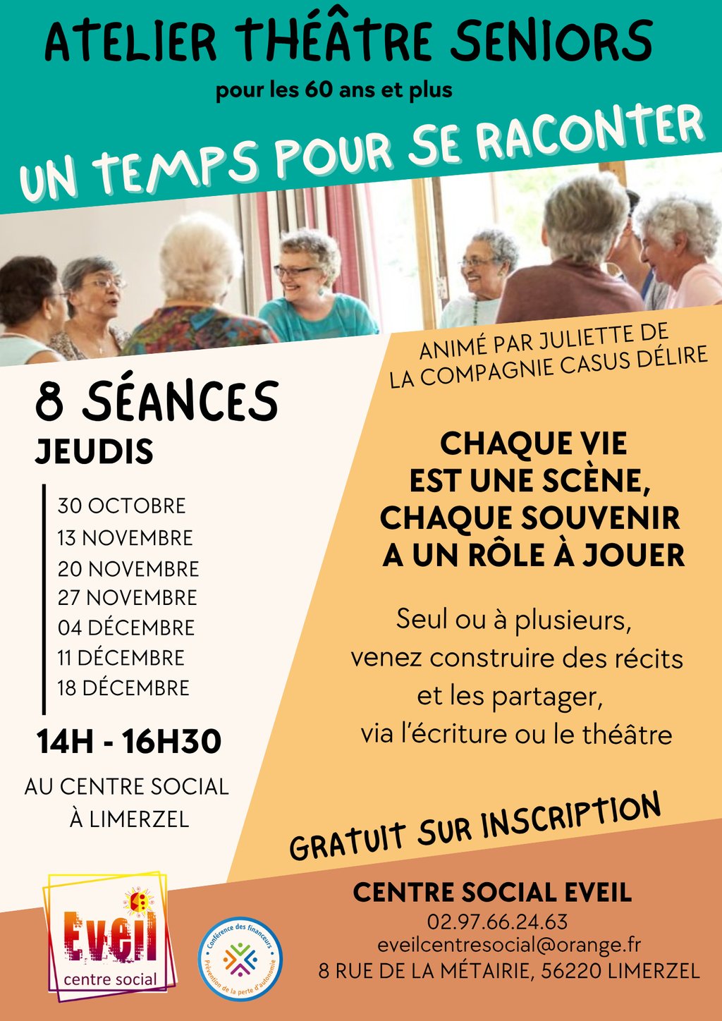 Le centre social ÉVEIL vous propose 8 séances d'une durée de 2 h 30, les jeudis après-midi à Limerzel. Ces séances seront animées par Juliette de la compagnie Casus Délire.
