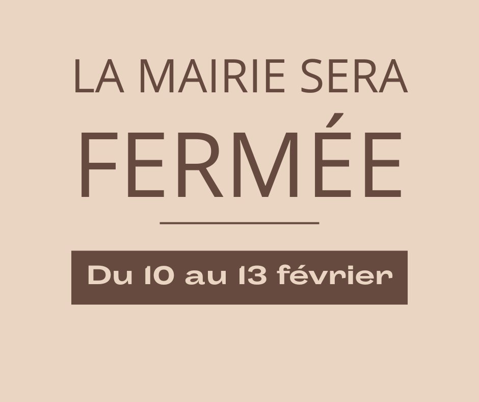 La mairie sera fermée du mardi 10 au vendredi 13 février inclus.