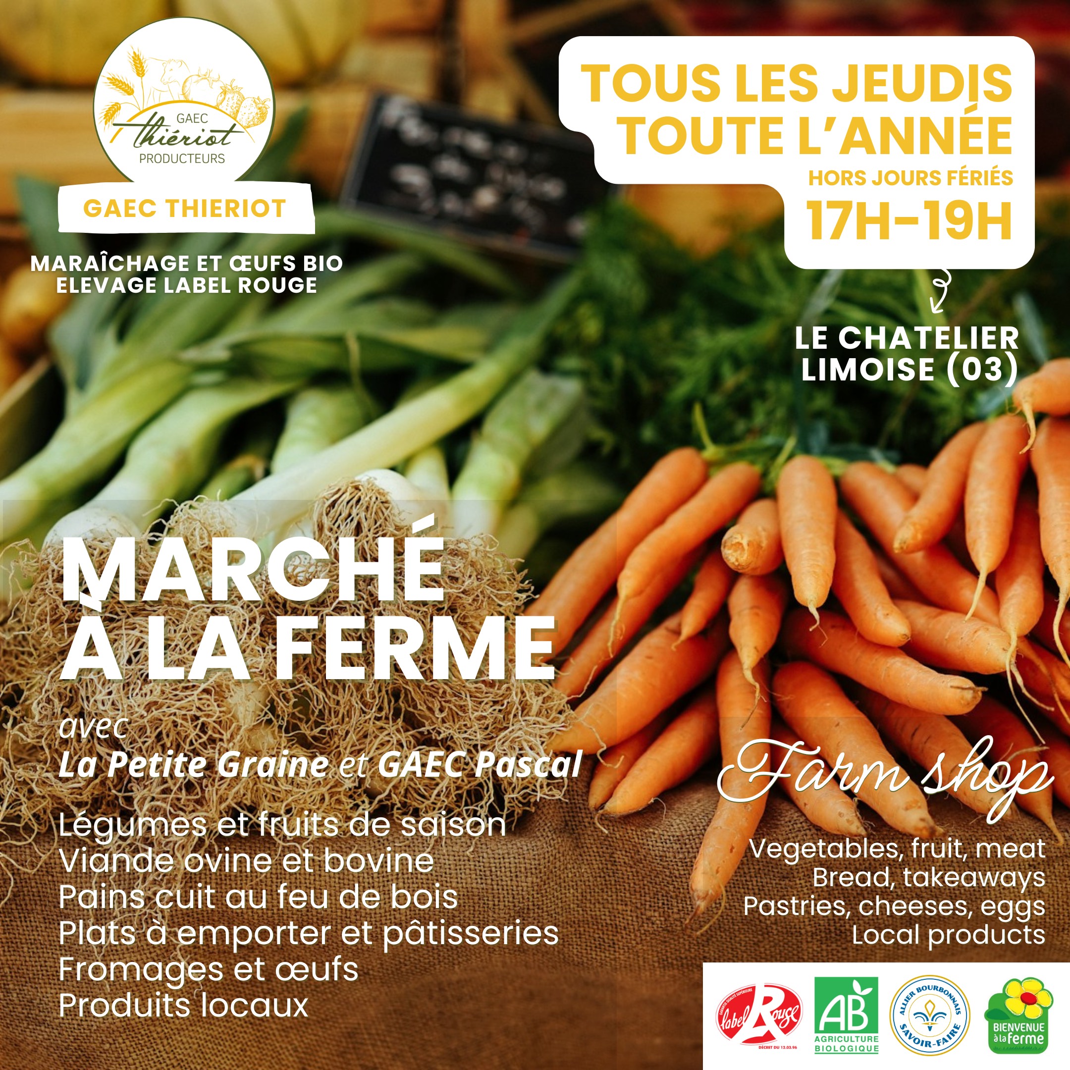 Marché à la ferme au GAEC Thiériot LE CHATELIER LIMOISE 03