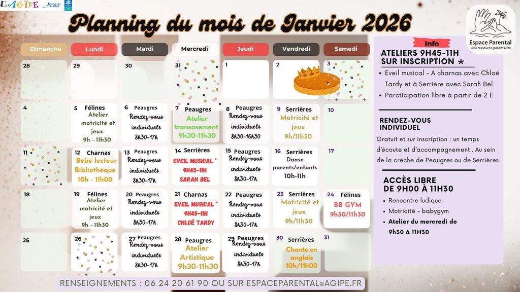 Planning du mois de JANVIER 2026
