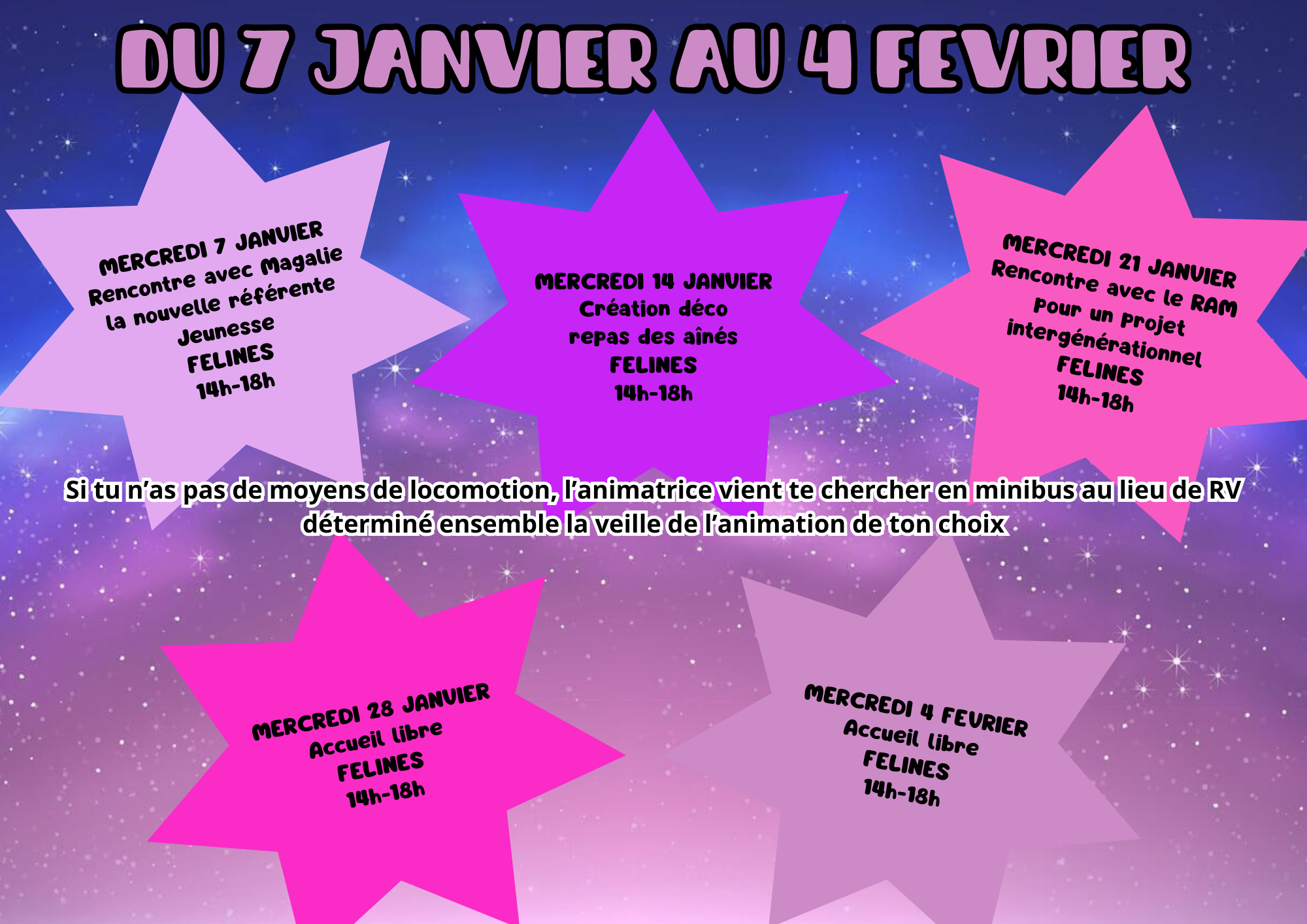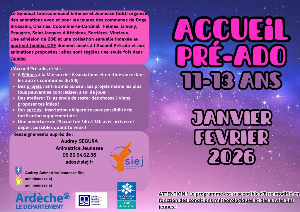 Tout le programme des activités pour les 11 -13 ans en PJ