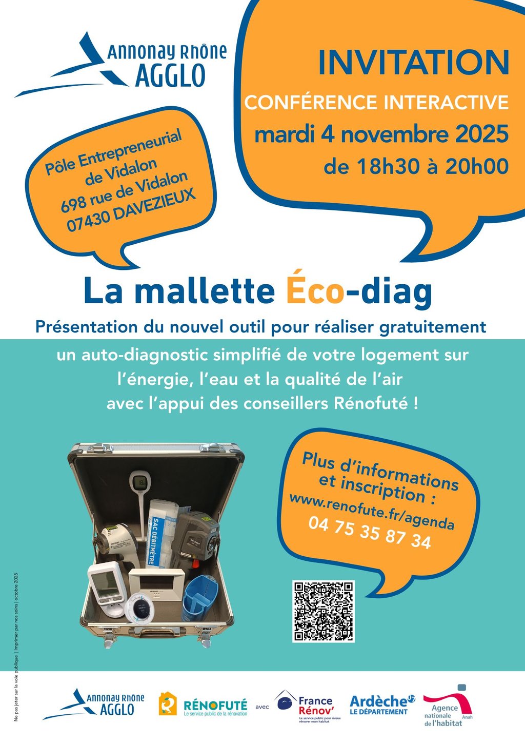 Dans le cadre du Service Public de la Rénovation de l'Habitat (SPRH), Annonay Rhône Agglo via son prestataire Rénofuté (Alec 07 qui porte l'espace conseil France Rénov’) lance un nouveau dispositif à destination des particuliers : une mallette contenant des outils de mesure afin de réaliser un auto-diagnostic simplifié de son logement sur l’énergie (consommations, déperditions), l’eau et la qualité de l’air. Ce dispositif s’adresse aux habitants de la communauté de communes. Il permet aux particuliers de mesurer, tester, analyser puis d’échanger avec un conseil Rénofuté afin d’identifier des améliorations possibles.