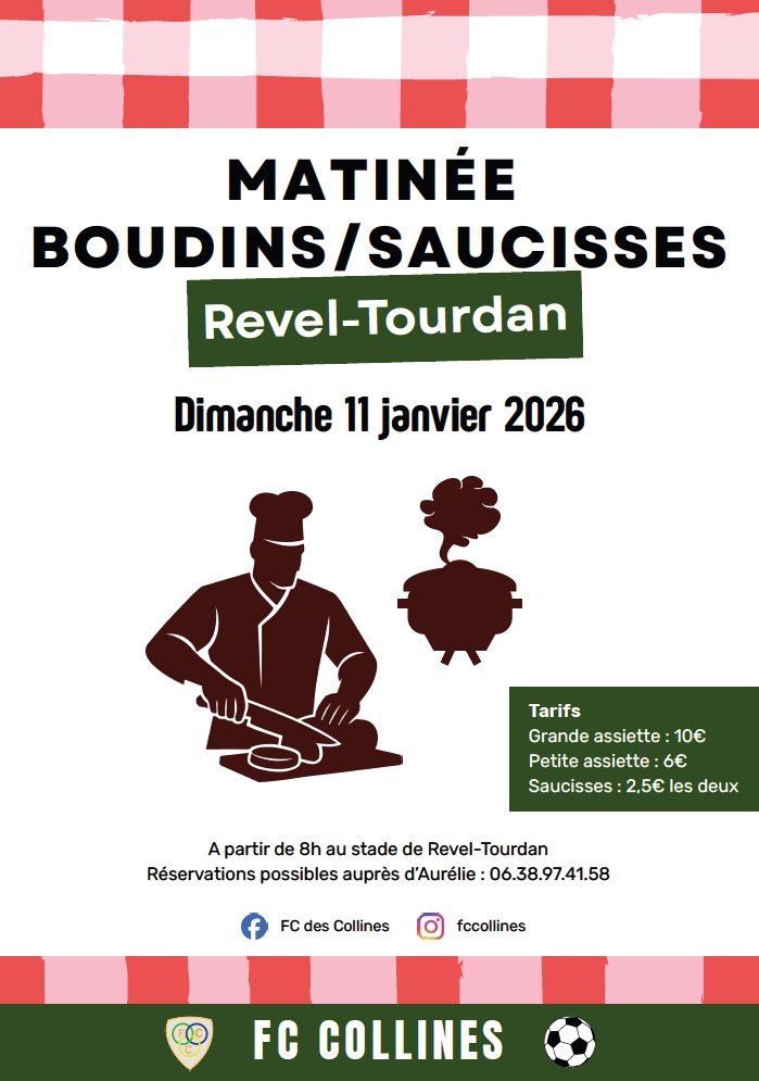 Le FC Collines vous attend nombreux pour leur matinée boudins/saucisses.