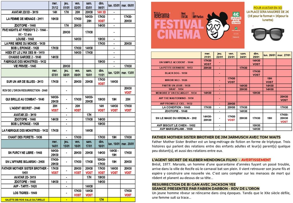 Et du 21 au 27 janvier c est la fête du cinéma avec la place à 4€