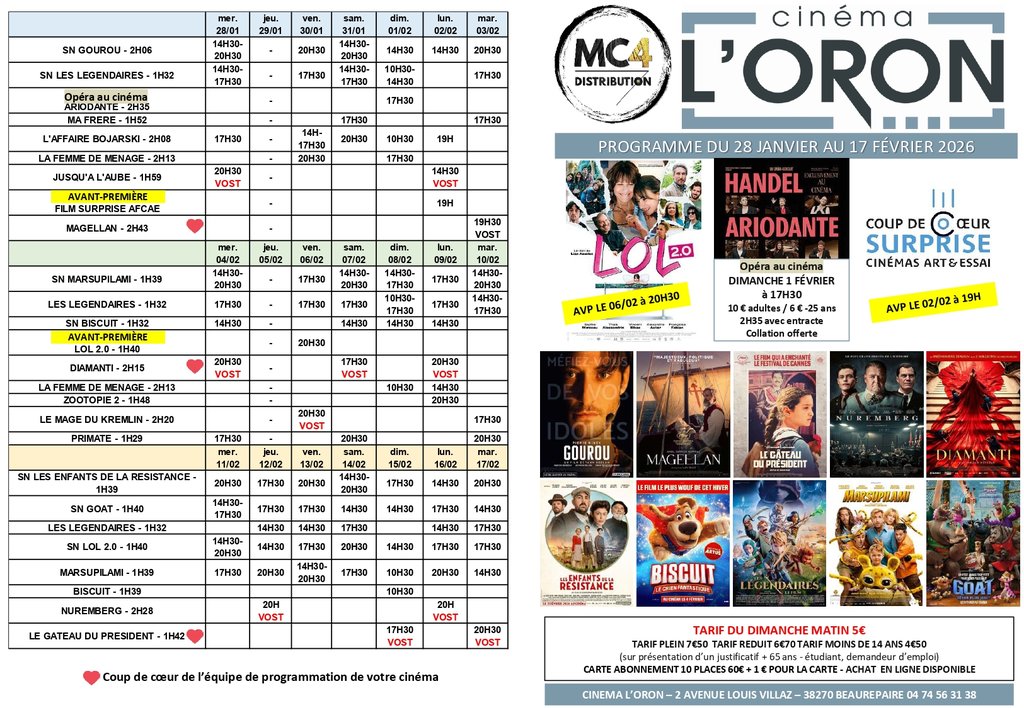 Programme du cinéma l’ Oron du 28 janvier au 17 février