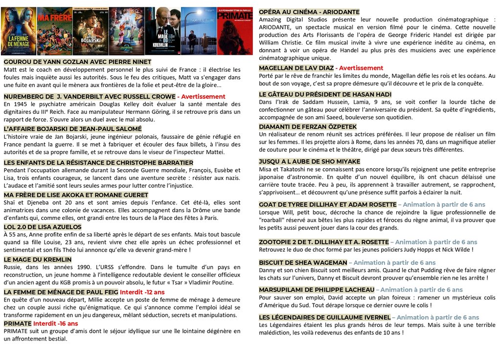 Nous avons la chance d' avoir un cinéma à proximité profitons en