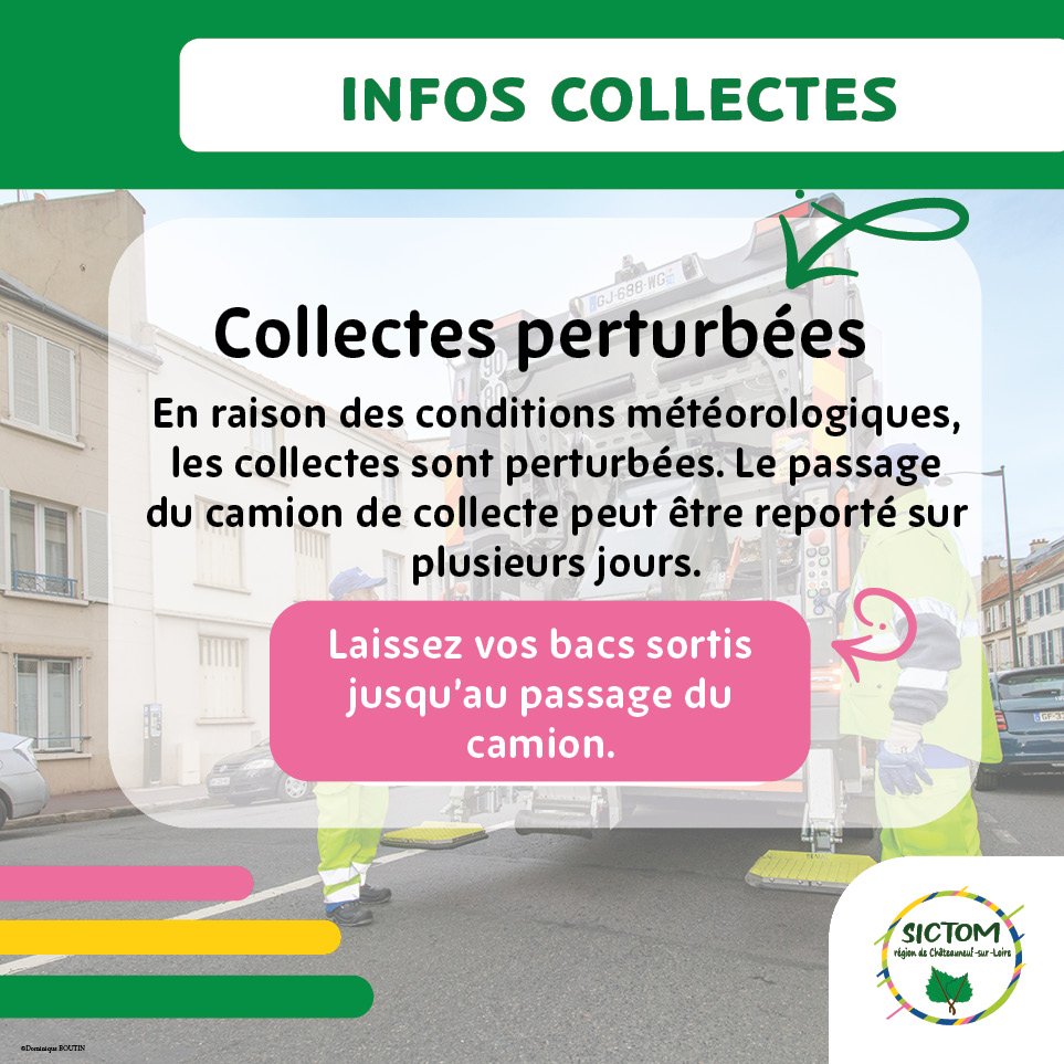 ⚠️ Consigne importante : Merci de laisser vos bacs sortis jusqu'au passage effectif du camion. Un retard de plusieurs jours est possible.