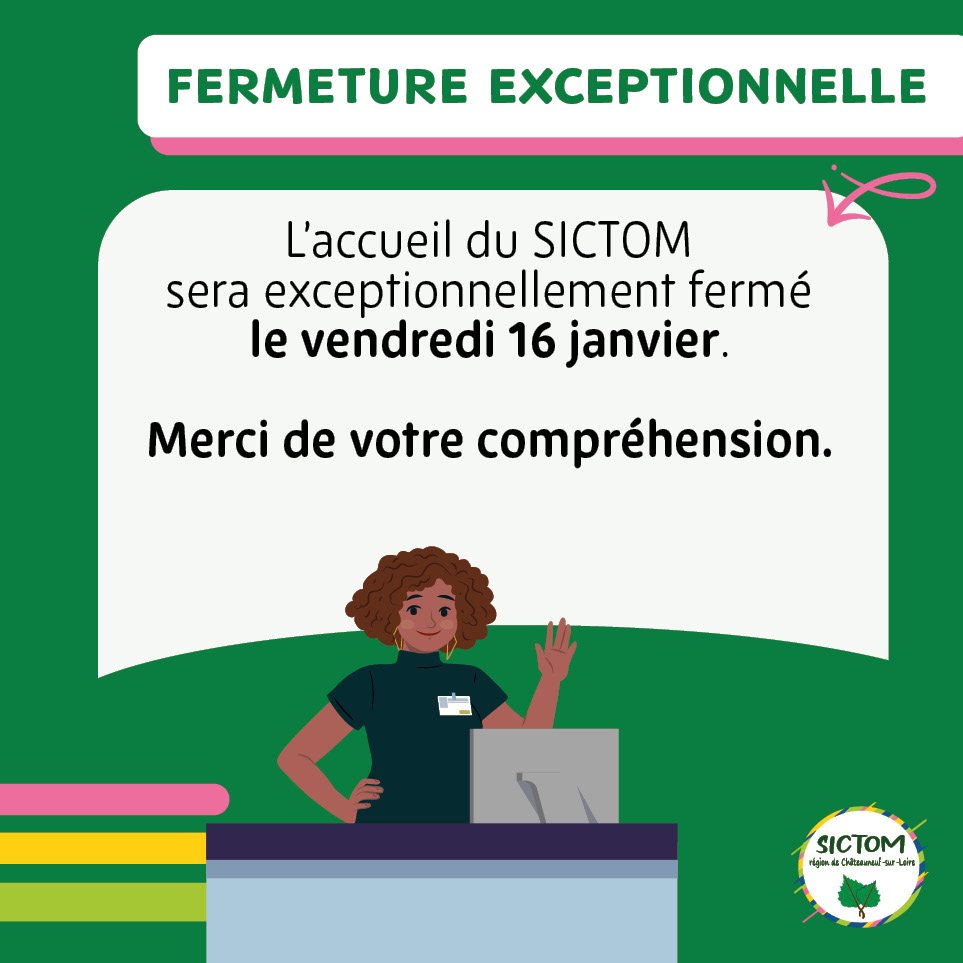 L'accueil du SICTOM de la région de Châteauneuf-sur-Loire sera exceptionnellement fermé ce vendredi 16 janvier.