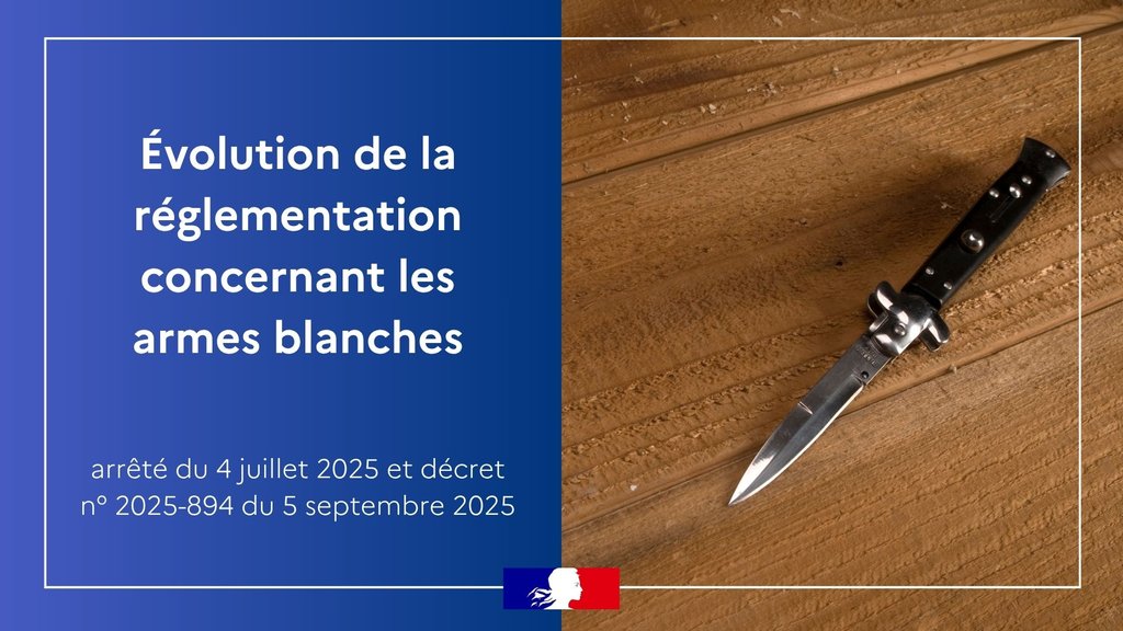 Les personnes physiques ou morales qui commercialiseraient des armes blanches classées en catégorie Da (poignards, couteaux-poignards, matraques, couteaux « papillon », couteaux automatiques à cran d’arrêt, étoiles de Ninja et « coups de poing américains » combinés à une lame d’un modèle antérieur au 1er janvier 1946) ont jusqu’au 07 mars 2026 pour déposer, en préfecture, une demande d’autorisation d’ouverture de commerce.