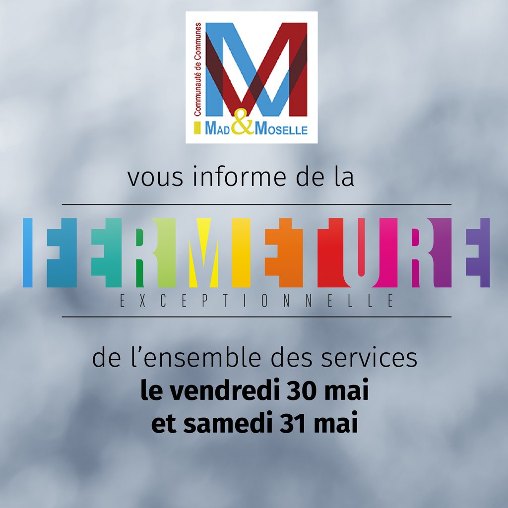 🏡 Tous nos services seront fermés le vendredi 30 et samedi 31 mai. Cette fermeture concerne nos bureaux administratifs, les espaces France services, le service pour les passeports et cartes d'identité, l'agence postale intercommunale, la médiathèque intercommunale et les déchèteries de Charey et Bernécourt.