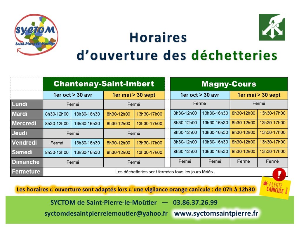 ⏰ HORAIRES D’OUVERTURES DES DÉCHETTERIES