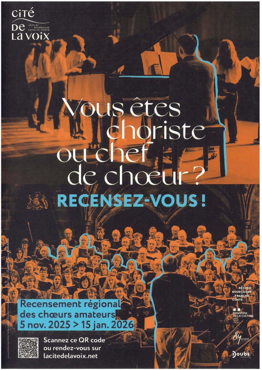 đ¶ Vous chantez dans un chĆur ? Vous en dirigez un ? Votre structure en accueille un ? La CitĂ© de la Voix lance un recensement rĂ©gional des chĆurs amateurs de Bourgogne-Franche-ComtĂ©, du 5 novembre 2025 au 15 janvier 2026 đ€