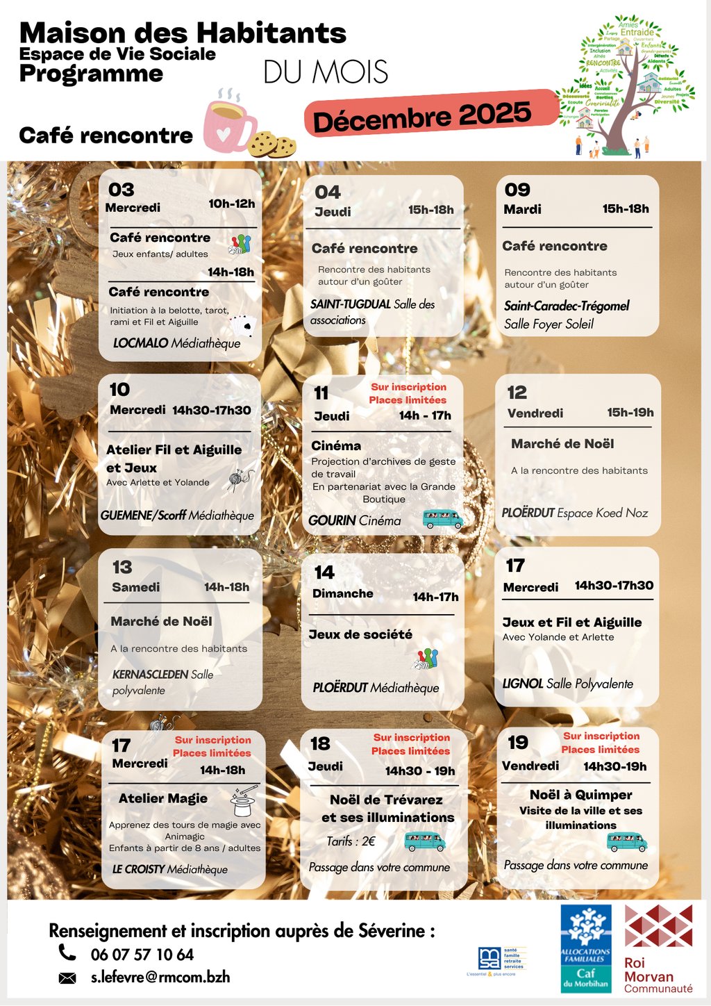 Venez partager un moment autour dâun cafĂ©, participer Ă des ateliers crĂ©atifs, profiter des marchĂ©s de NoĂ«l ou encore dĂ©couvrir des sorties exceptionnelles.