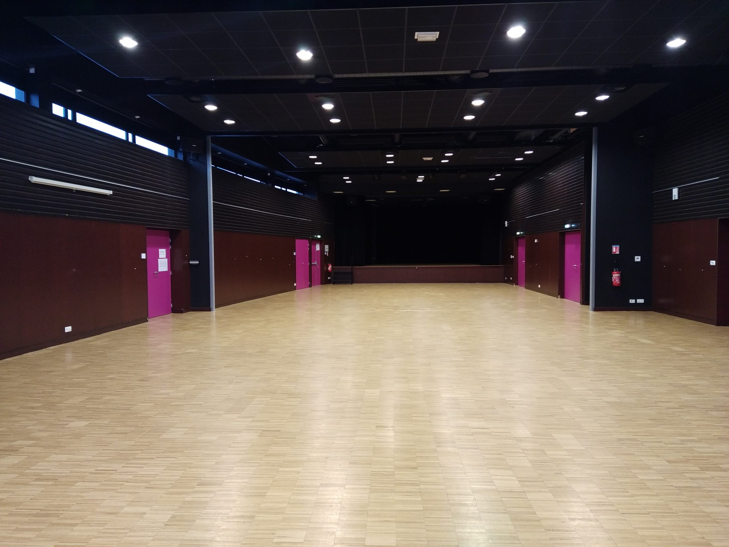 La salle Kejadenn peut être divisée en trois espaces distincts grâce à des cloisons amovibles : salle Yelen – salle Bendy – Salle Penfoul (la scène)