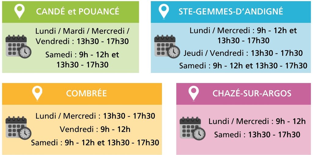 A noter : En cas de contraintes météorologiques (vents violents, fortes chaleurs, ...), les horaires d’ouverture des déchèteries d’Anjou Bleu Communauté sont susceptibles d’être adaptés. Pour toutes informations, contactez le service Gestion des déchets au 02 41 92 52 72.