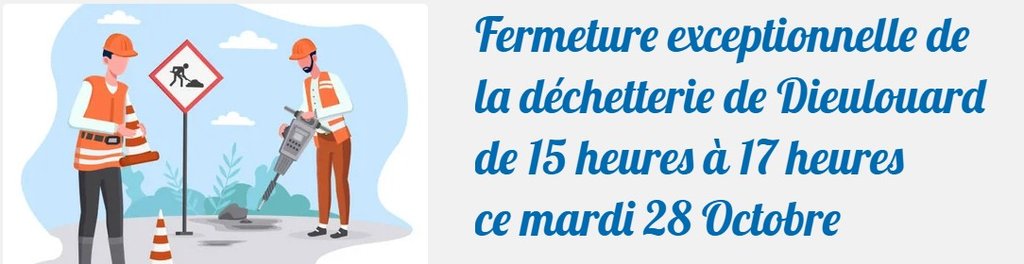 Les services de la CCBPAM nous informe que la déchetterie de Dieulouard sera exceptionnellement fermée le mardi 28/10/2025 à compter de 15h pour réalisation de travaux.